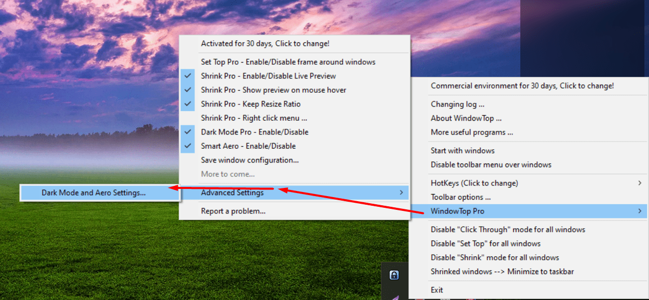 In this release, the dark-mode pro, and aero (opacity pro) features will not work properly if you running it on Windows 10 with OS Build before 18362. Your OS Build should be at least 18362 in order that these features will work properly.